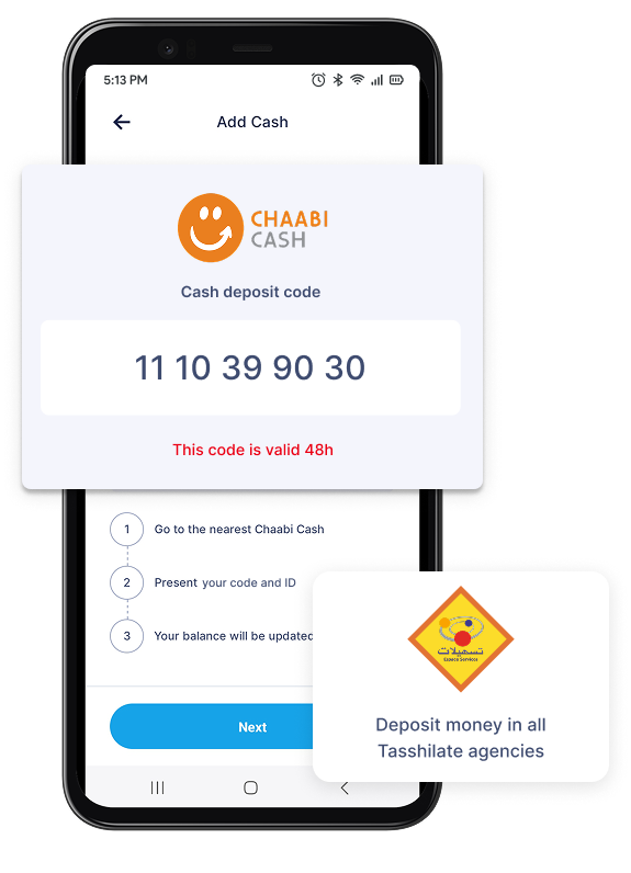 بفضل اتفاقياتنا مع "تسهيلات" و"الشعبي كاش"، يمكنك الآن الوصول إلى أكثر من 7000 وكالة إيداع وسحب في جميع أنحاء المغرب.